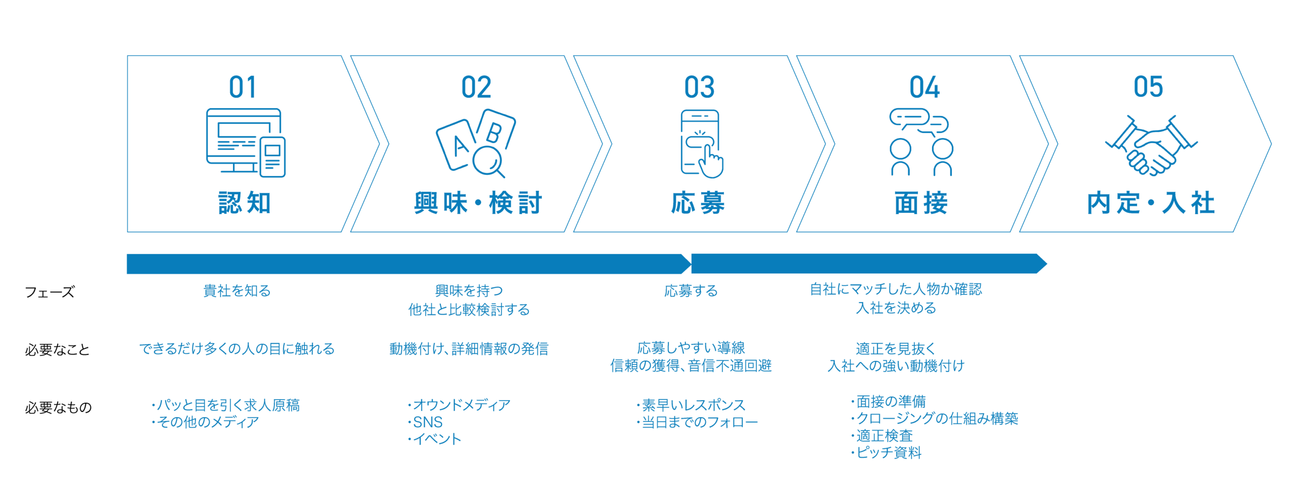20年以上かけて培ってきた「マーケティング」の知見を活かし、認知〜採用までのすべてのタッチポイントをトータル設計し、実施、改善していきます。